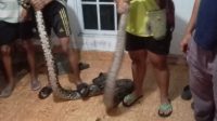 Ular Sawa Berukuran Besar Ditangkap Warga dan Relawan Emergency di Jalan Jahri Saleh