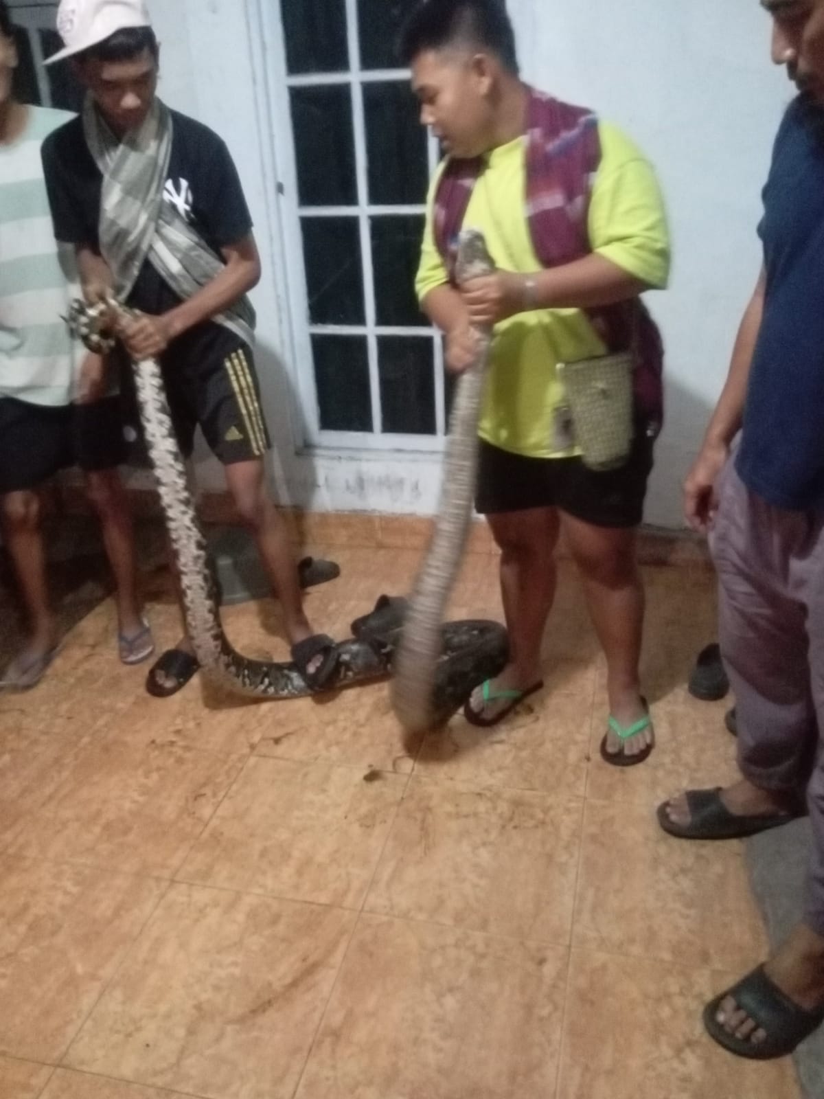 Proses penanganan dilakukan secara hati-hati mengingat ukuran ular yang cukup besar serta kondisi lokasi yang berada di area permukiman padat.
